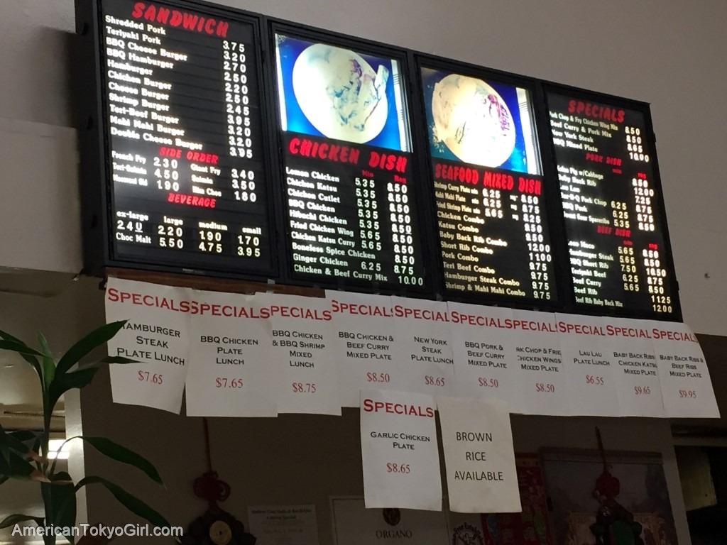 ハワイらしい「マヒマヒバーガー$3.20(約¥351)」や、日本のグルメが息づいている「ヒバチチキン$8.50(約¥931)」なども気になります。