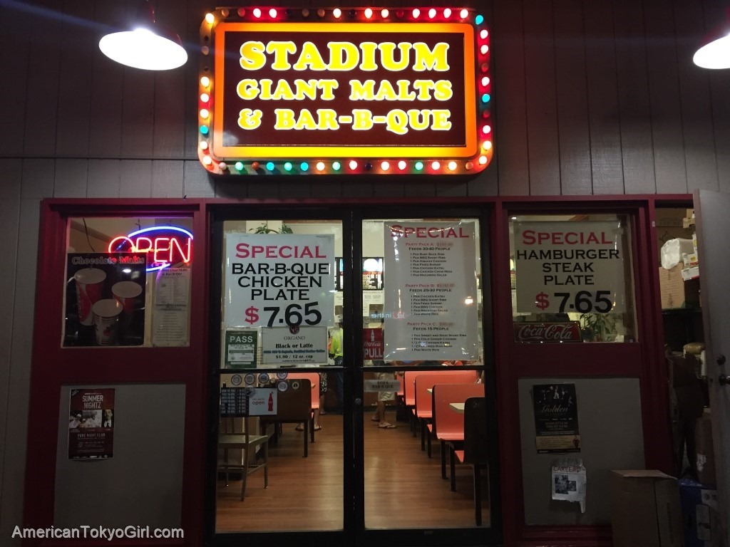 ローカルなエリア、アイエアにある「Stadium Giant Malts & Bar-B-Que(スタジアムジャイアントモルツ&バーベキュー)」。ハワイローカルには「Bob’s BBQ(ボブスバーベキュー)」の愛称でも知られています。