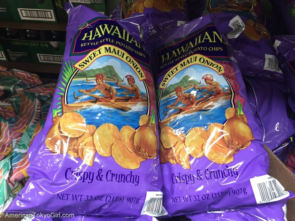 薄いカットのポテトで、味は塩味だったと思います。日本ではハワイといったらオアフが人気ですが、アメリカ人にはマウイが人気です。