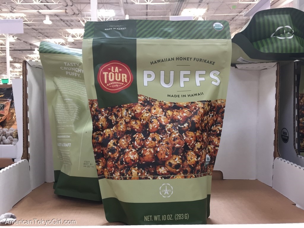 ハワイではふりかけ味がとにかく人気です。「Hawaiian Honey Furikake Puffs(ハワイアンハニーふりかけパフ)」 $8.99(約¥985)